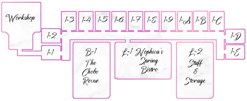 Open every Wednesday at 8PM ET/5PM PT, Nophica's Spring Bistro & Terrace is the perfect place to relax before a show at Chobo Revue Theater!